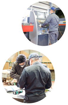 私たちの仕事は、鉄・ステンレス・アルミなどの金属板を「切ったり」「曲げたり」「つなげたり」して、生活や産業に欠かせない部品をつくること。